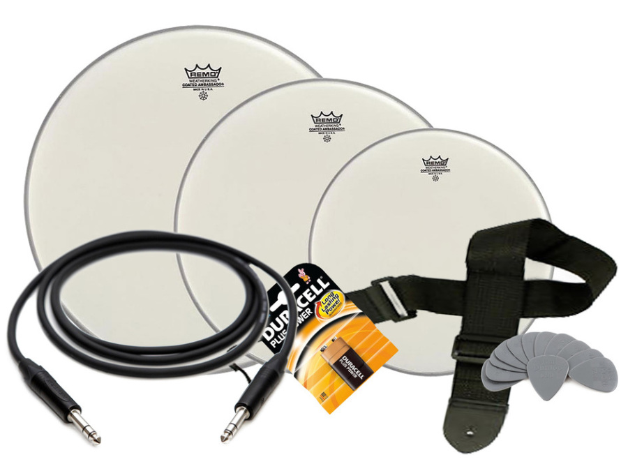 Ofrecemos varias marcas de baquetas, cuerdas de guitarra (juegos enteros o sueltas), cuerdas de bajo (sueltas), puas, cables de instrumento, correas, parches de batería y pilas de pedal (9v).